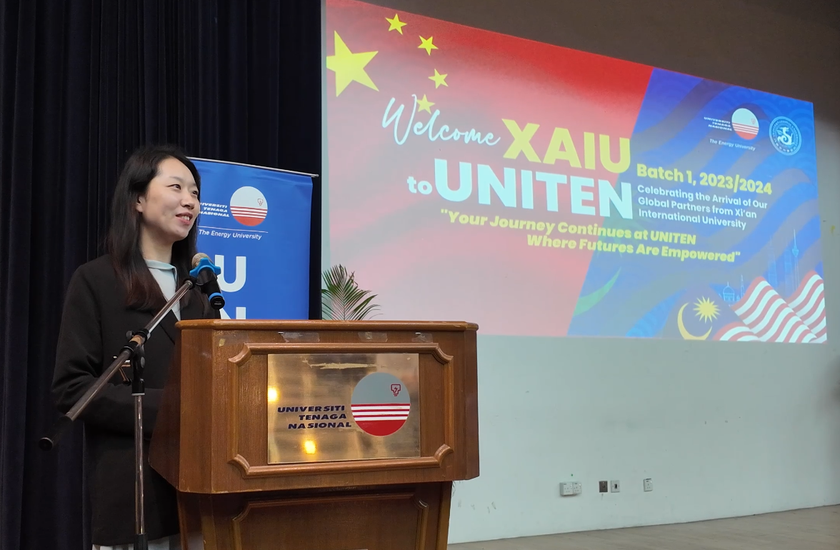 西安外事学院带队教师柏铭在致辞中对马来西亚国家能源大学的精心安排致以感谢。 她讲到,此次首批学子赴马深造是两校深化国际教育合作的重要里程碑,学校将持续推动此合作项目,期待与马来西亚国家能源大学进一步拓展合作领域,为更多学子搭建成长成才与继续深造的优质平台。